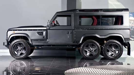 Kahn Design modified the Land Rover Defender 110 off-roader into a six-wheel drive luxury vehicle, the Flying Huntsman 110 WB 6×6. The British tuning shop completely revamped this vehicle with a 400mm extension on the front end, 800mm to the rear cabin, while also widening it by 150mm. Under the hood is a GM-sourced LS3 V8 6.2-liter engine with 430 horsepower, mated to a six-speed automatic transmission and powers all six wheels thanks to a number of drivetrain upgrades. The interior has been replaced with luxurious red leather and Harris Tweed and a panoramic dlass sunroof. Priced at £199,875.00 ($312,768USD) you can purchase it right now from the Kahn website.