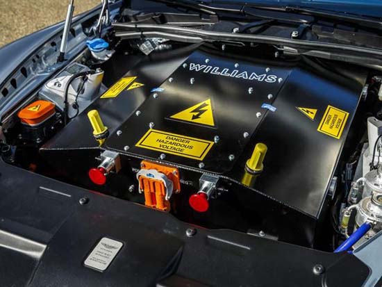 Watch out Tesla! Aston Martin has unveiled their new RapidE concept, based on the Rapide S. Developed in collaboration with Williams Advanced Engineering, the British luxury automaker showcased the EV at London’s Lancaster House in time for a meeting between British royals and President of The People’s Republic of China, Xi Jinping. The automaker didn’t provide any performance figures on the RapidE concept, but it did release an under-hood photograph, shown below.