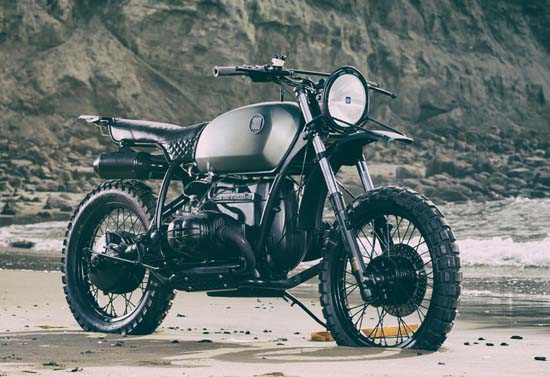 This impressive ride is the work of Portland-based bike gurus Icon 1000. Based on the 1975 BMW R90/6, the details of the “Slow Burn” are pretty impressive, the bike features a subtle military vibe an oversized Hella rally light, custom exhaust, quilted seat from Ginger, subframe from a Ninja 300, Ducati 860GT front fender, and Continental Twinduro TKC80 tires.