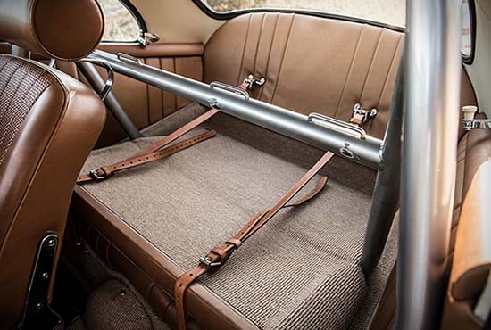 While the body retains much of the classic Porsche 356 silhouette, the Outlaw receives a range of tasteful modifications: smoothed or deleted GT-style bumpers, a louvered deck lid, through-the-hood fuel filler, driving/fog lamps, bonnet straps, racing mirrors, and more.