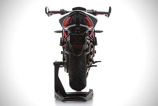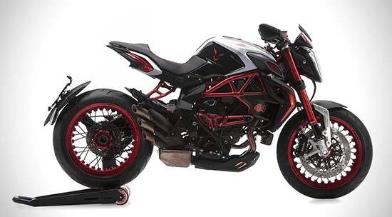 MV Agusta presented at EICMA 2015 a limited edition ‘Dragster RR LH44’ designed in collaboration with three time Formula 1 World Champion Lewis Hamilton. Painted in white ice pearl or metal black carbon, this impressive ride features most of the bodywork made from carbon fibre with a matt 3K finish, and comes powered by a 798 cc, three cylinder engine that pushes out 140 HP-EC (103 kW) at 13,100 rpm, using an advanced six injector system. Limited to only 244, the bike is now available to purchase through MVA’s dealer locator website. Check out the MV Agusta Dragster RR LH44 in action below.