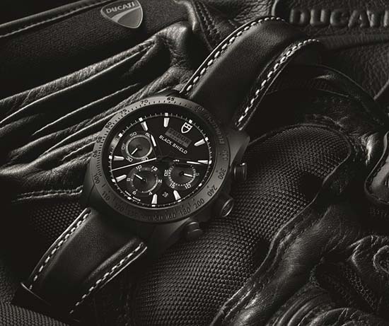 Swiss watchmaker Tudor unveiled a new matte black and white version of the Fastrider Black Shield, inspired by the distinctive sporting elegance of the new Ducati XDiavel. Housed in a matte black ceramic case measuring 42mm, It has a fixed matte black ceramic bezel with engraved tachymetric scale, an AR-coated sapphire crystal, and offers water resistance to 150 meters. It is powered by the Swiss automatic Tudor caliber 7753 (base ETA) with 27 jewels, beating at 28,800 vph and a power reserve of 46 hours. Completing the ensemble is a black leather or rubber strap with folding clasp and safety catch in black PVD steel. This timepiece is a perfect match for the bike! Price: $4,925