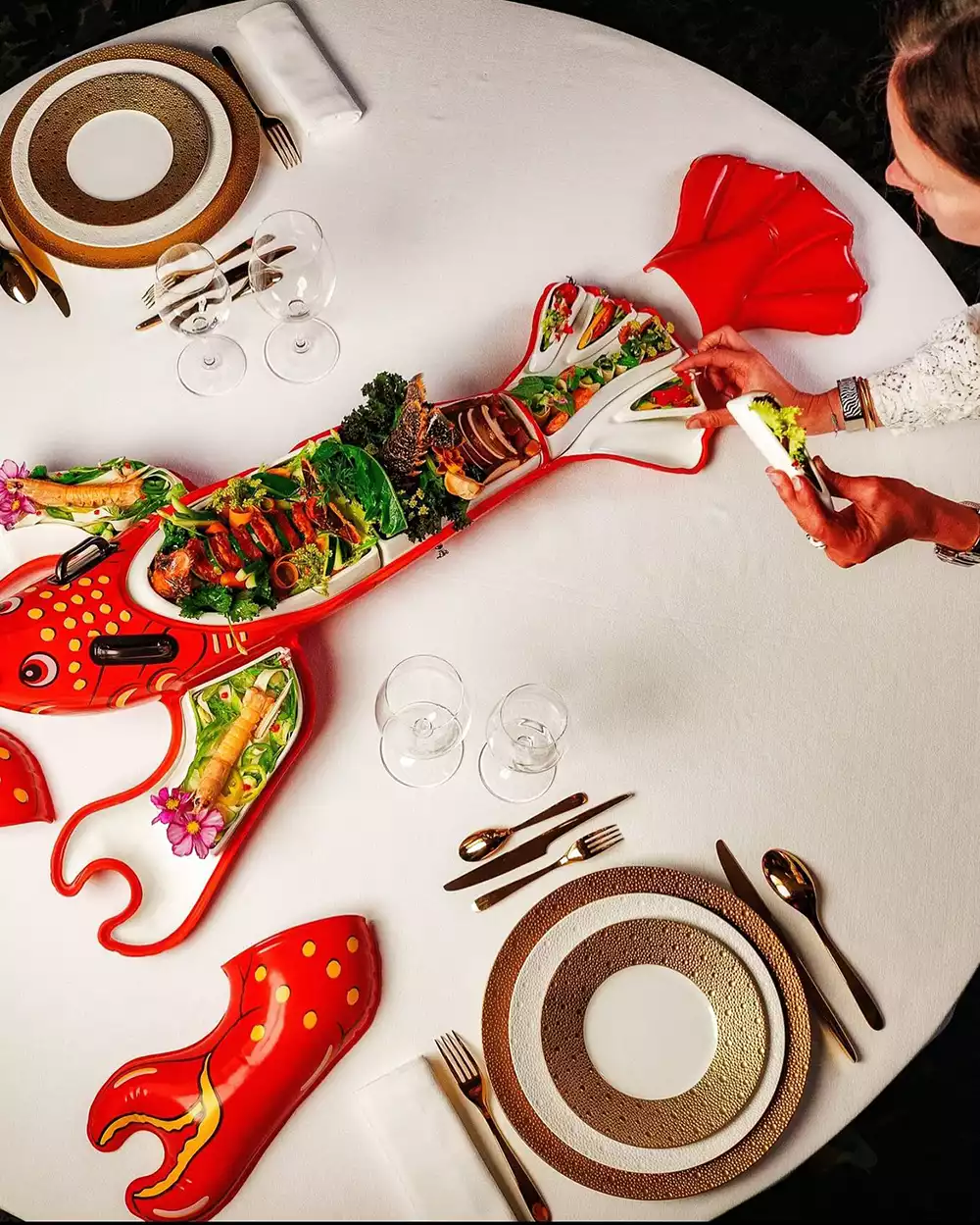 The Heliconia pattern on the piano was originally created by Marie-Claude Lalique, granddaughter of René Lalique.