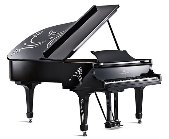 Renowned piano manufacturer Steinway & Sons unveiled Heliconia, a new piano designed in collaboration with French crystal maker Lalique. Combining the best of Steinway & Sons with the best of Lalique, the magnificent instrument is adorned with 75 individual crystals, all fashioned by hand at Lalique’s Alsatian factory , and then carefully placed on stems of silver, on the legs and sides of each piano at the Steinway factory in Hamburg. Available in black or white as grand pianos, the result is a beautiful piece of art.