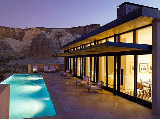 Amangiri, the complex of minimalist villas, owned by the Aman hotels sits on 600 acres in Canyon Point, Utah, in a region known as the Four Corners, where the states of Utah, Arizona, New Mexico and Colorado meet.