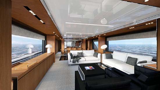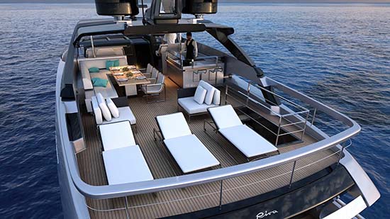 Say hello to Riva 100′ Corsaro, a new amazing yacht from the Italian yacht builder Riva. Revealed just a couple of months ago at the Cannes Yachting Festival, the spectacular yacht designed by Officina Italiana Design, offers accommodations for 20 passengers spread across five cabins and is powered by a pair of MTU 16V 2000 engines that produces an incredible 2,638 horsepower. The 100′ Corsaro will have a maximum speed of 27,5 knots, a cruising speed of 25 knots, and a range of 320 nm. What do you think of this yacht ? Yay or Nay?