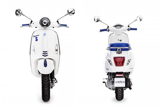 Renowned Parisian boutique colette has partnered with Vespa on a limited edition scooter. Made to celebrate Vespa’s 70th anniversary, the iconic Primavera 50 2T scooter comes in colette’s signature colors of white and blue and is powered by a single cylinder, 2-stroke Hi-PER2 engine with both electric and kick start mechanisms. Priced at €3200 (approx. $3641) but unfortunately only one was made.