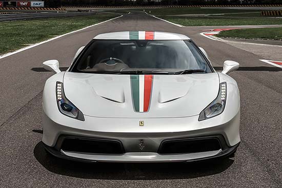 Ferrari 458 MM Speciale, it uses the same stripped-out chassis while under the hood is a 597bhp, 4.5-litre V8 engine (with a record 133bhp-per-litre).