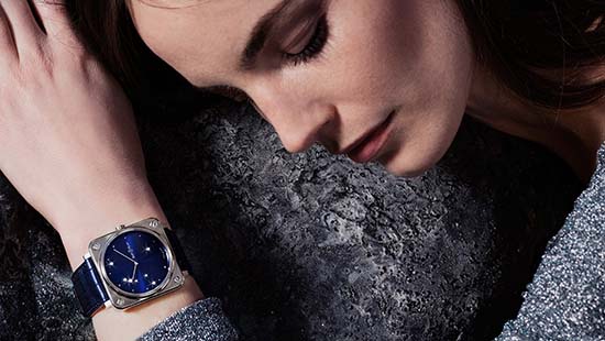 Bell & Ross pays tribute to the night skies, introducing a new line of elegant, contemporary watches aimed at sophisticated women. Housed in a stainless steel case measuring 39mm, the BR S Diamond Eagle features a midnight blue dial studded with diamonds; seven diamond stones are set into the dial in the pattern of the Aquila constellation. Inside is the Swiss quartz Bell & Ross caliber BR102. It comes completed by a midnight blue alligator leather strap with pearlescence and a steel buckle.