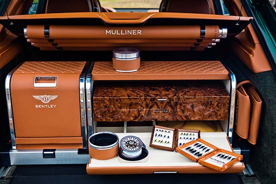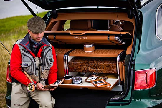 “The Bentayga Fly Fishing car showcases the breadth and level of detail a customer can expect from Mulliner. This is an individual bespoke solution and our skilled craftspeople can design elegant and exquisitely executed bespoke solutions to complement any customer lifestyle or hobby. Fly fishing is a sport that requires a variety of equipment and clothing, so it was essential to package the rods, reels, waders, boots and fly-tying station into the car in a luxurious, accessible and elegant way – and the end result is truly extraordinary.” said in a press release Geoff Dowding, Director of Mulliner.