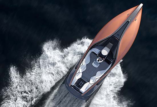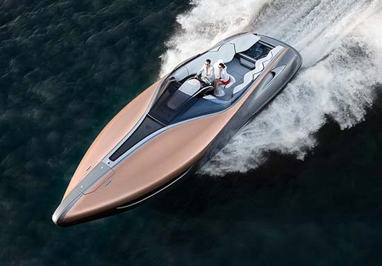 Japanese luxury car brand Lexus brings its luxury lifestyle to the water with with the new Lexus Sport Yacht concept. Capable of ferrying six to eight guests and boasting a lightweight construction using composite materials, the open sport yacht is powered by two 5.0-litre V8 engines, producing a total of 885bhp for a top speed of 43 knots (50mph).
