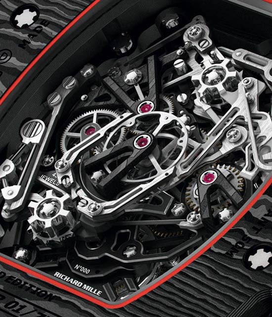 Weighing just 38 grams, the RM 50-03 is the first wristwatch made in Graph TPT (better known as graphene, that is six times lighter than steel and 200 times as strong), as well high-tech materials such as TPT Carbon, titanium.