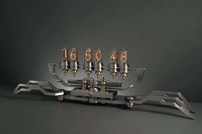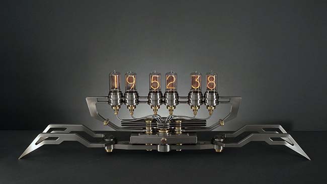 The Nixie Machine II uses six Nixie tubes to display the time, and comes with integrated Wi-Fi that allows the clock to automatically set the time, removing the need to set it manually.