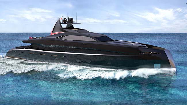 Say hello to the Gotham Project Superyacht, a sick Batman-inspired yacht designed by Ivan Erdevicki, built by Icon Yachts and brokered by Bristow-Holmes. The 150 feet (46-metre) aluminium yacht incorporates a large number of luxury amenities: custom glass wine cellar, gymnasium and symmetrical entertainment areas and ten cabins; five guest cabins and five crew cabins.