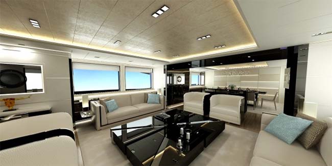 Below decks, the black beauty is powered by a pair of 2,000 hp MTU engines, that should deliver a top speed of 26 knots, and a cruising speed of 12 knots.