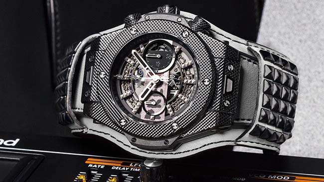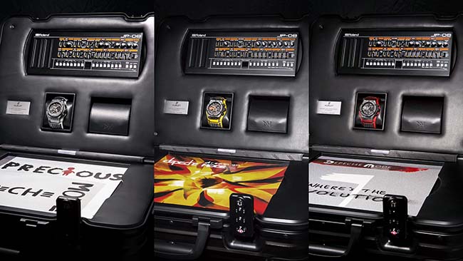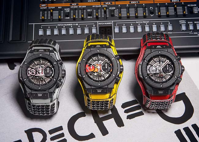 The exclusive Big Bang Depeche Mode “The Singles” timepiece will come housed in a custom-made RIMOWA Topas Stealth suitcase – the unique timepiece, a Roland JP-08 synthesiser, corresponding vinyl single and certificate of authenticity signed by the band. Net proceeds from the sale of the 55 unique piece will be go to charity: water. Any takers?