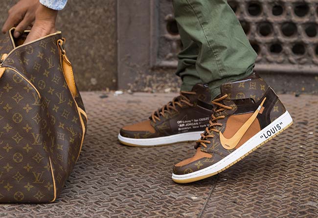 New York-based artist Ceeze teamed up with Relevant Customs to celebrate Virgil Abloh’s appointment as creative director of Louis Vuitton with a special Off-Louis Air Jordan 1. Made from authentic LV leather, the custom sneaker features Louis Vuitton’s signature monogram, a complementary tonal brown colorway, exposed stitching on the Swoosh, and the designer’s hallmark quotation marks—”LOUIS” and “VUITTON”—on the midsole.