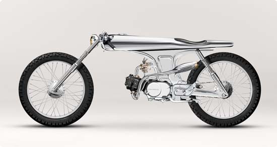 Daryl Villanueva’s Bejing based workshop Bandit 9 has revealed in Saigon this eye-popping new concept – the EVE Concept. Based on the 1967 Honda SS with a 90cc-125cc engine, the bike received a new chrome unibody, custom exhaust, custom handlebars, exposed suspensions, a cattle skin leather seat and chrome/bronze finishes. This sleek, simple beauty is priced at $4600 USD and is available for pre-order at banditnine.com. More details coming soon